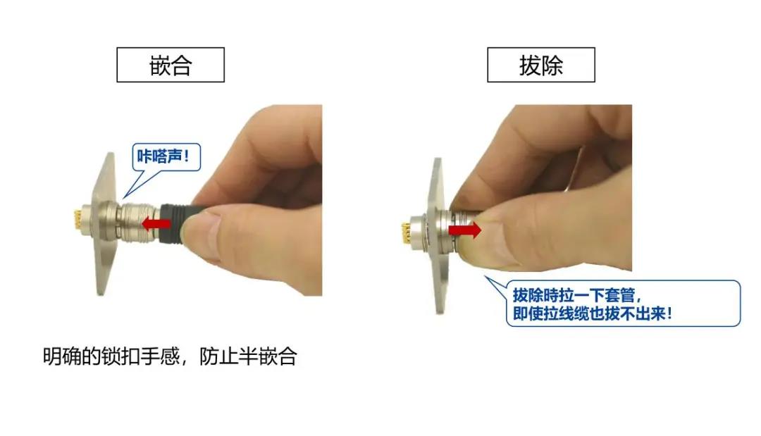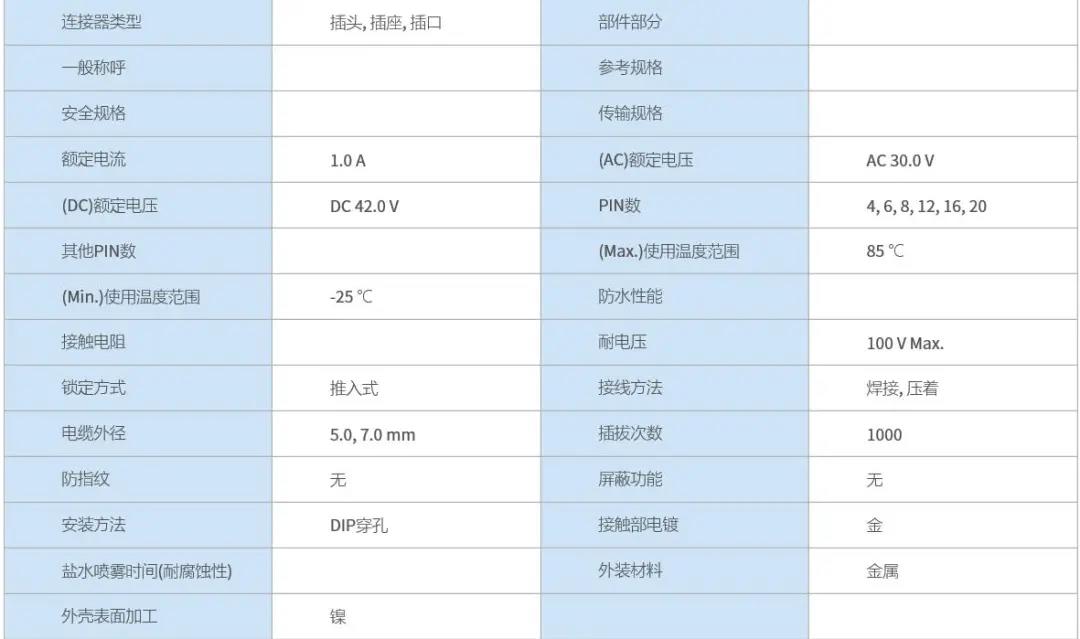 特点 1 超小级高密度圆形连接器 2 具有良好操作性的推拉锁 3 EMI对策设计 4 支持Cat.5e(1Gbps)高速以太网※ 5 丰富的选型 ※传输性能可根据线缆・引脚尺寸・结线方法而改变, 线束后确认实力。 超小级