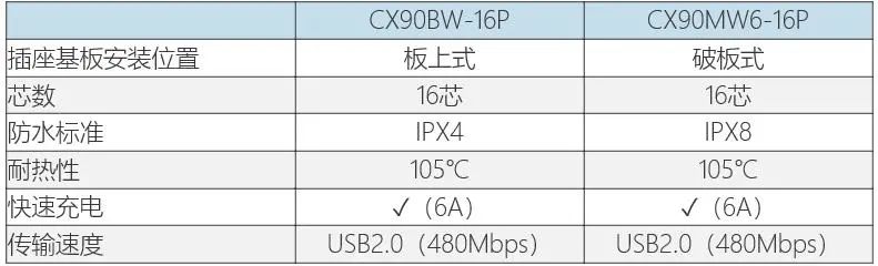 1广濑电机为Type-C连接器CX系列开发出了一种新插座,本次发布的是支持IPX4防水的板上式16芯 “CX90BW-16P”。