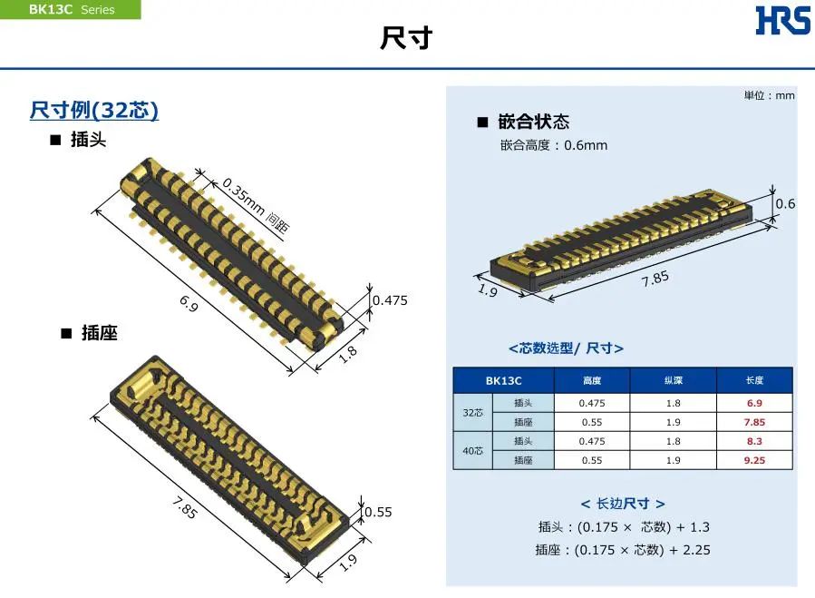 - 堆叠高度 0.6mm, 纵深 1.9mm